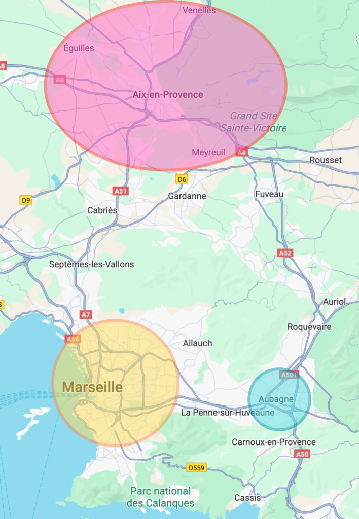 Les tarifs présentés pour Aix-en-Provence et Aubagne sont valables dans tous les quartiers.